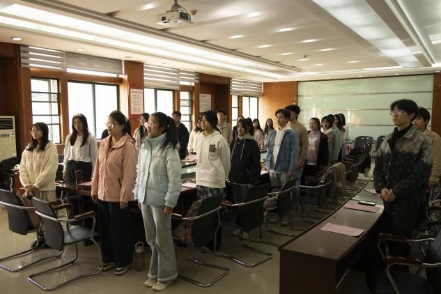 “光荣啊,中国共青团”。全体成员齐声高唱团歌,为本次活动拉开序幕。