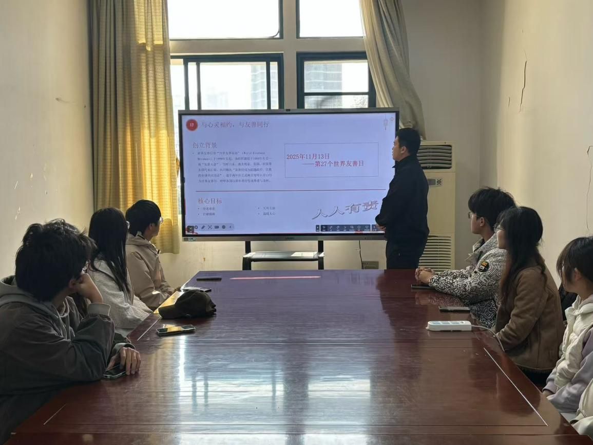 11月13日是第27个世界友善日,活动最后,团支部开展“与心灵相约,与友善同行”宣传教育。团员们学习世界友善日的创立背景与核心目标,共同探讨校园友善行为的实践路径,承诺从让座、互助等小事做起,传递尊重与关怀,打破隔阂、温暖人心,让友善成为校园文明的鲜明底色。