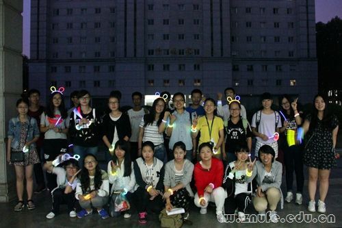 18时25分左右工作人员已开始向前来参加活动的各院同学们发放各色手环,并组织同学们在大运场进行不计时的6圈酷跑。夜幕下的首义大运场,跑步的同学三两结伴,彩色的荧光手环随着同学们的奔跑在夜色中闪闪发亮,吸引了众多同学和附近居民的目光。
