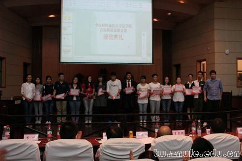 颁奖环节,杜潇潇同学获得“最佳辩手”称号,方培思等17名同学获得“优秀审判员”称号,张兰若等12名同学获得“优秀辩手”称号,1号、4号、7号及11号队伍获得“优秀书状奖”称号,5号、6号、8号及10号队伍获得“优秀律政团队”称号。徐涤宇教授与肖崇明书记为获奖队伍及同学颁奖,并合影留念。