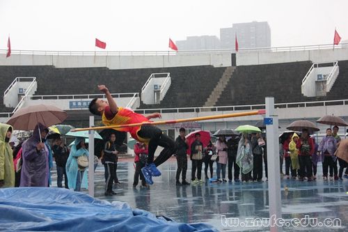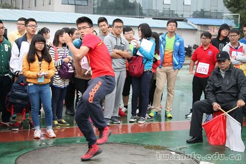 天降大雨、地面湿滑的恶劣环境不能阻挡运动员们跳跃的脚步。在趣味运动项目“袋鼠跳”中,法学院王安同学以其纯熟的技巧,最终凭借16.06秒的成绩获得第六名。赛后王安表示:“完成袋鼠跳的关键在于掌握比赛节奏和频率。最重要的不是比赛的结果,而是参与的热情与路上的风景。”