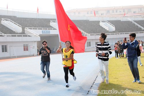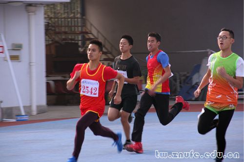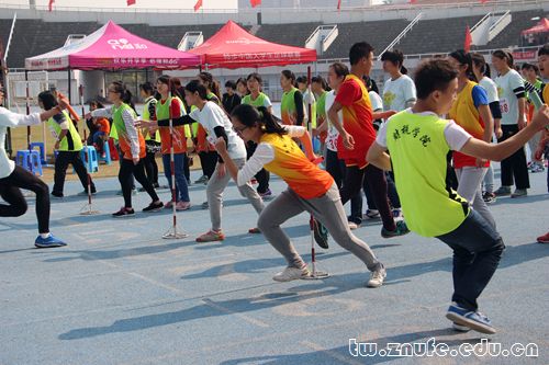 接力赛,是速度与耐力的较量,是协力与默契的对垒。枪声迸放的一瞬间,法学院30×60米迎面接力首棒队员如离弦之箭,一马飞向终点。接棒的同学早已摆好阵势,右臂前伸,上身微倾,灼灼目光凝定在呼啸而来的接力棒上。招臂,交接,攥紧,行云流水之间接力棒已易入下名队员手中,再次破势而出。几番激烈角逐后,法学院由起初暂落后于工商管理学院竞至持平,初显超越势头。鏖战至关键时期,对手的一次失误明朗了局势,法学院健儿凭着无隙配合、零掉棒记录,一举拔得头筹!