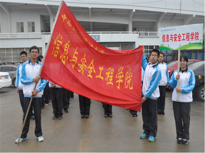 29日上午8:00,运动会开幕式在学校新体准时举办,纵然天公不作美,下起了小雨,但这丝毫没有影响同学们的热情,开幕式有序的进行着,国旗护卫队护送着我们的国旗,庄严而又神圣,各个学院代表队的方阵整齐划一,走出的步伐铿锵有力,看台上的观众更是热情似火,激动的喝彩声、气势恢宏的鼓声在新体体育场内久久回荡。