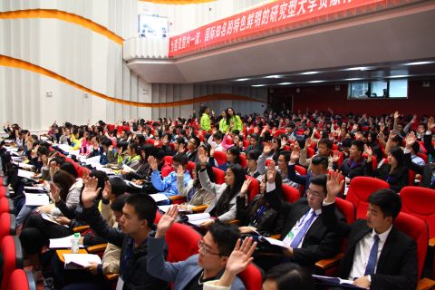 中午,各代表团在各分会场进行分组学习。围绕各级领导重要讲话精神、相关会议文件展开学习,并就学校“十三五”期间,围绕学校建设国内一流、国际知名的特色鲜明的研究型大学的战略目标,学生组织如何发挥作用话题进行讨论。