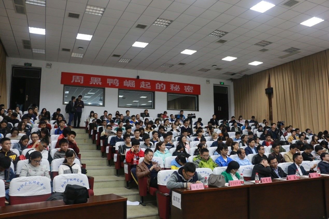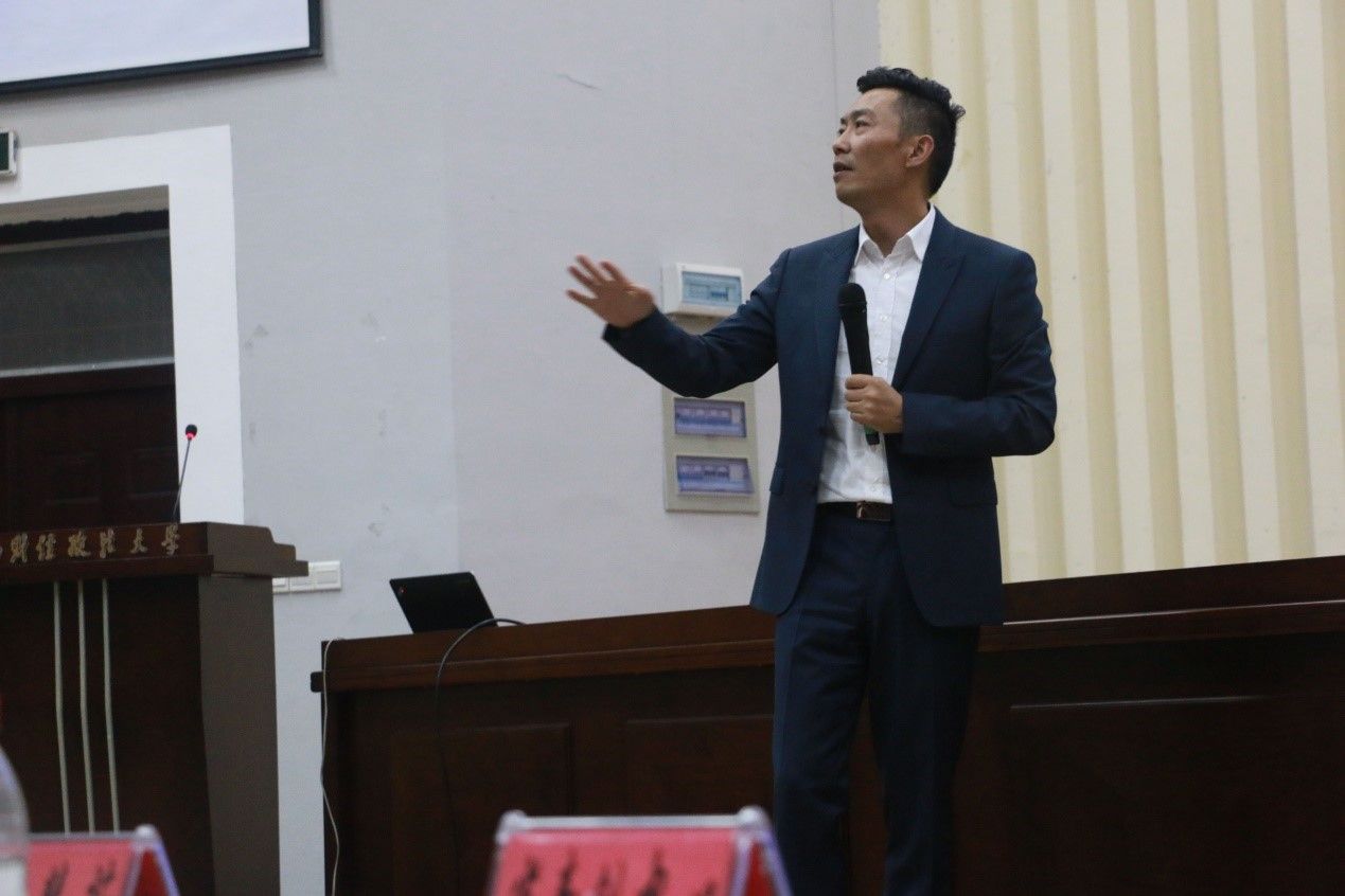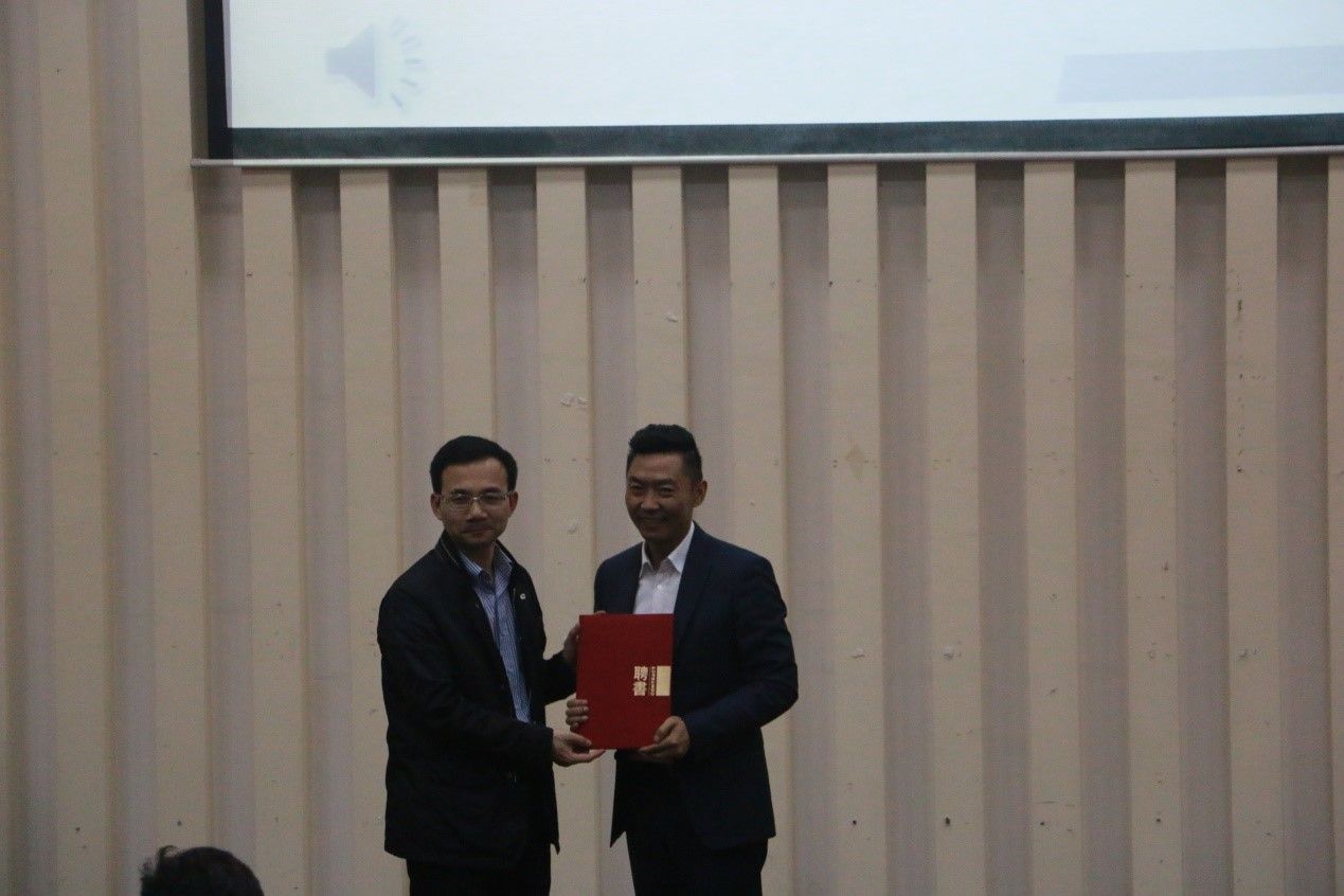 校党委副书记王文贵致辞并介绍了创业训练营的组织方案。随后,团省委副书记金鹏向周黑鸭企业发展有限公司董事长颁发了“湖北青年创业导师”聘书。聘任仪式结束后,朱于龙董事长用诙谐幽默的语言,结合自己的创业历程,向在场的学员们分享了自己与“周黑鸭”的创业管理经验。