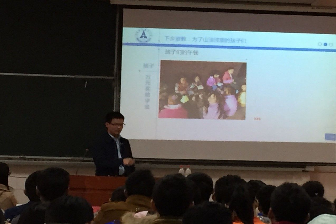 在首义校区的培训课堂,范献龙老师以“我的故事,在感恩中成长”为题,从支教、留学、感恩三个方面展开授课。范献龙老师结合自身的工作、学习经历,与同学们进行了交流和分享。七年支教,千里家访,积极改善乡村学校硬件设施,终获成果与肯定——范老师从支教生活的艰辛与收获谈起,他说:“这一切让他的人生更加充实和快乐,有时舍弃一些,会带来更多意想不到的惊喜”。而谈到自己的留学经历时,他着重强调了“团队”的意义——团结一致、共同奉献,并结合实际就“如何成为真正优秀的学生干部?”为在场的学生干部提出了切实可行的建议。最后,范老师提出了“常怀感恩之心”,勉励同学们追求梦想、不断奋斗,“为大多数人带来幸福的人,就是最幸福的人”。
