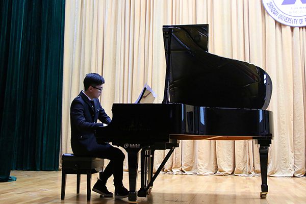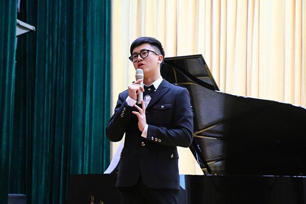 “为什么音乐能进入纸质书?音乐是如何进入的?音乐与文字有什么关联?”一连抛出三个问题后,王希翀学长娓娓道来,为大家分析了音乐的三个功能:情绪带入功能、想象延伸功能和记忆触发功能。通过诙谐幽默的问答、轻松有趣的游戏和现场演奏聆听等互动,抽象的概念变得鲜活而具体。在阐述音乐对想象力的延伸与释放时,王希翀学长邀请了两组观众上台进行听音表演游戏,在007系列主题曲播放时,参与者立即作出瞄准射击的动作,而当西游记片头曲出现时,两人则抓耳挠腮争当“大师兄”,《我心永恒》的旋律中参与者表演出迎风欲飞的拥抱时,现场欢呼鼓掌,气氛热烈,大家在欢笑声中领悟了音乐对于想象力的激发与放大作用。