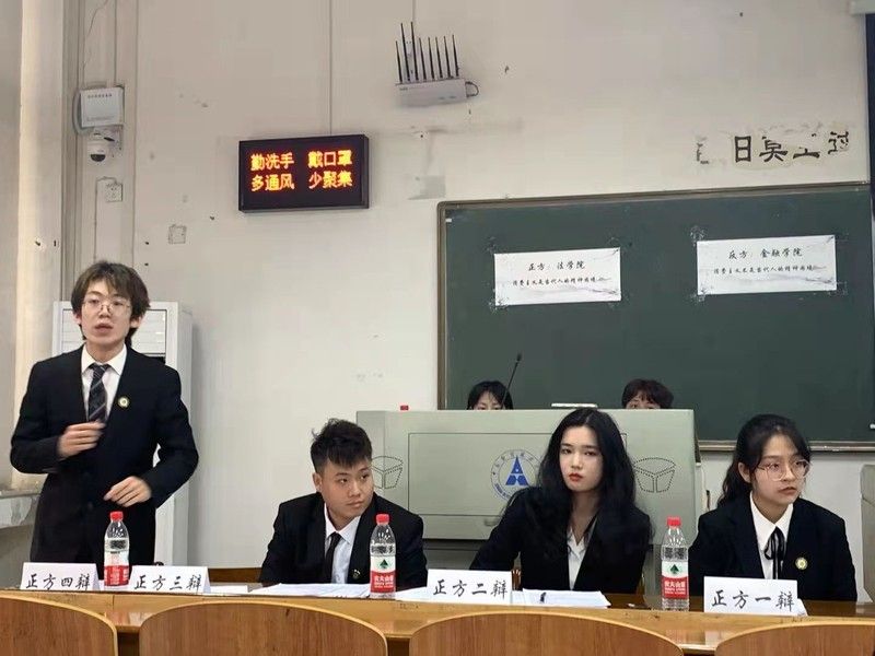 最终,金融学院和新闻与文化传播学院顺利晋级决赛,争夺桂冠。会计学院和法学院晋级季军争夺赛。金融学院许璐、外国语学院朱江笛、新闻与文化传播学院毛小川、工商管理学院罗予汐四位辩手勇摘最佳辩手称号。