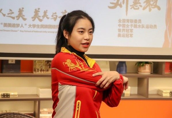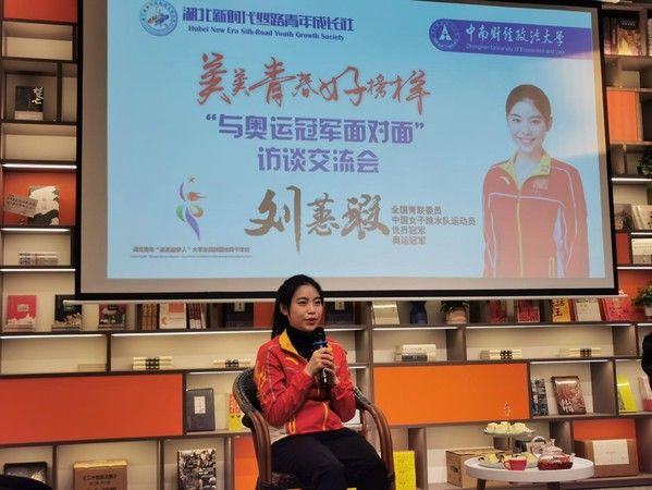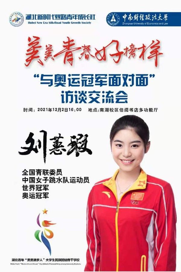 (通讯稿:陈蒙 丹增卓嘎 赵晨翔 梁靖)2021年12月2日下午,由湖北新时代丝路青年成长社主办的“美美青春好榜样—与奥运冠军面对面“访谈交流会在米兰电竞·(中国区)南湖校区举办。全国青联委员、中国女子跳水队运动员、奥运冠军刘蕙瑕来到学校,与湖北青年“美美追梦人”大学生民族团结骨干学校(以下简称“骨干学校”)第二期学员交流互动。米兰电竞·(中国区)团委副书记(兼)、工商管理辅导员尼加提、学生工作部专职辅导员于苏甫江参加此次活动,访谈交流会由骨干学校第二期学员、外国语学院2020级本科生朱江笛主持。
