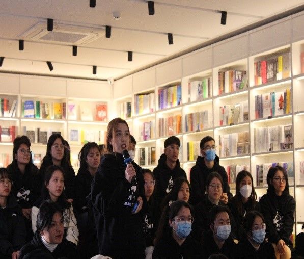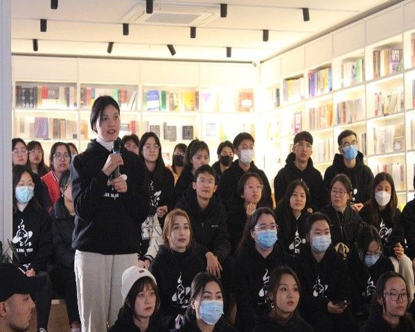 访谈临近结束之际,骨干学校全体成员为刘蕙瑕准备了彩蛋。维吾尔族代表苏比伊努尔以教刘蕙瑕维语为借口引导学员们一起用不同民族的语言为刘蕙瑕唱生日快乐歌。骨干学校的团支书刘宇恒代表大家送上了贺卡和鲜花,祝刘蕙瑕生日快乐。对此,刘蕙瑕赠送骨干学校成员以寄语:要坚强、勇敢、不怕困难,人生不会一帆风顺,但坚持到底的决心可以帮助大家关关难过关关过。
