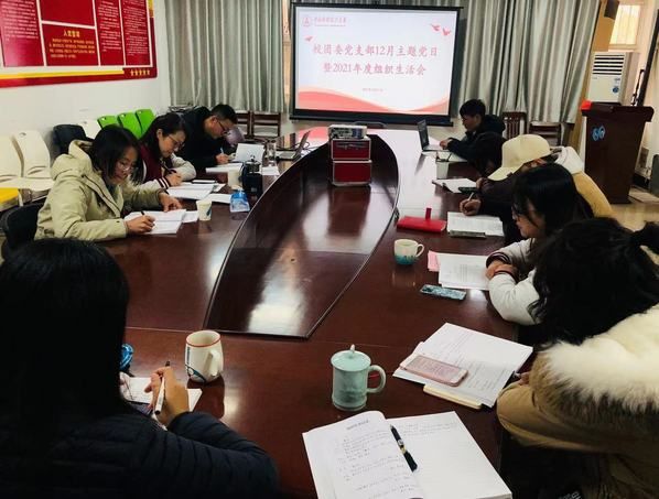 为深入学习贯彻习近平新时代中国特色社会主义思想和党的十九届六中全会精神,弘扬伟大建党精神,走好新的赶考之路,切实把党史学习教育成果转化为推动高质量发展的强大动力,以优异成绩迎接党的二十大召开暨2021年度组织生活会,在12月31日下午,校团委党支部在新体中心团委106会议室开展校团委党支部12月主题党日暨2021年度组织生活。