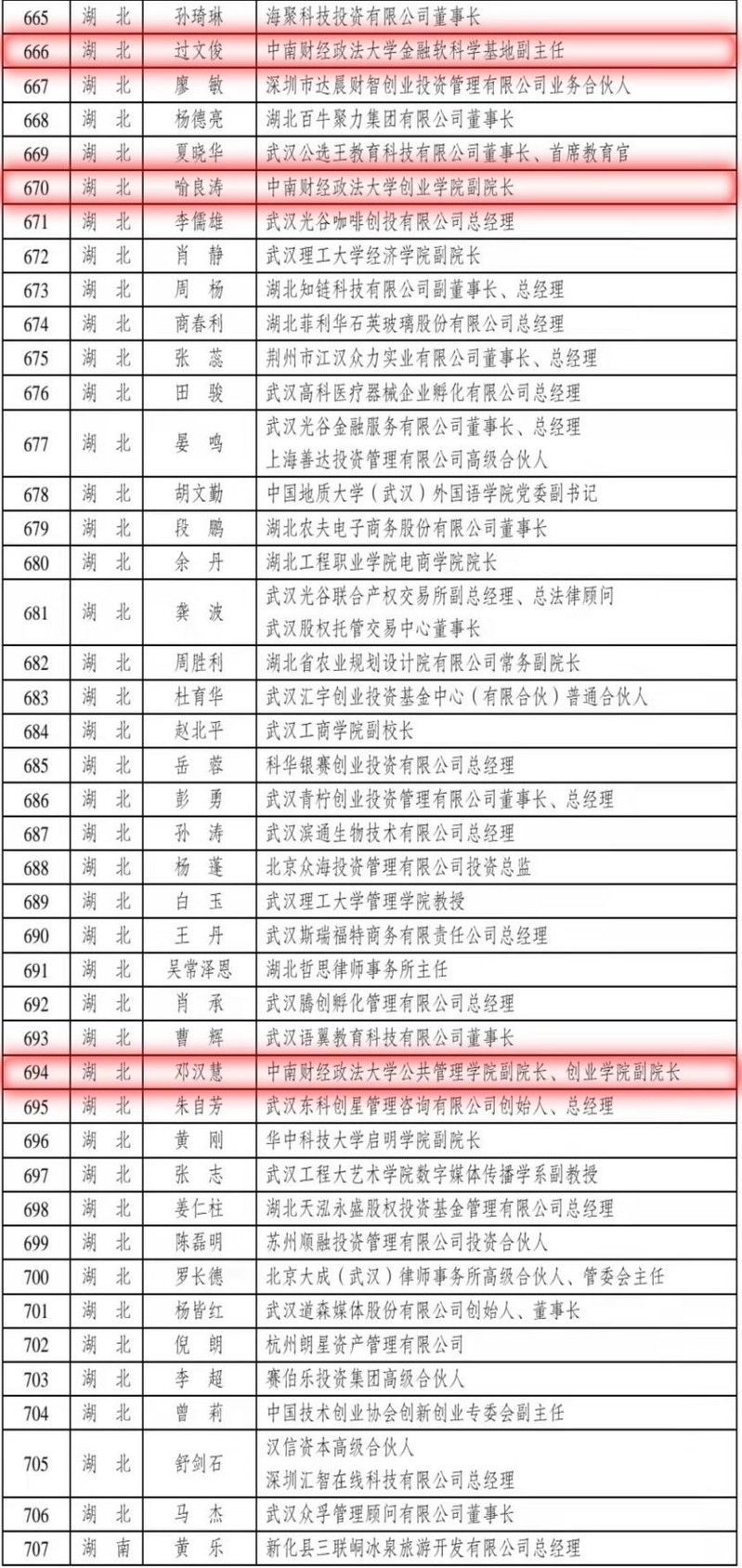 在2月24日,湖北省发布了“中国青年创业导师”第五批人员中部分名单,我校喻良涛、过文俊、邓汉慧三位老师入选。