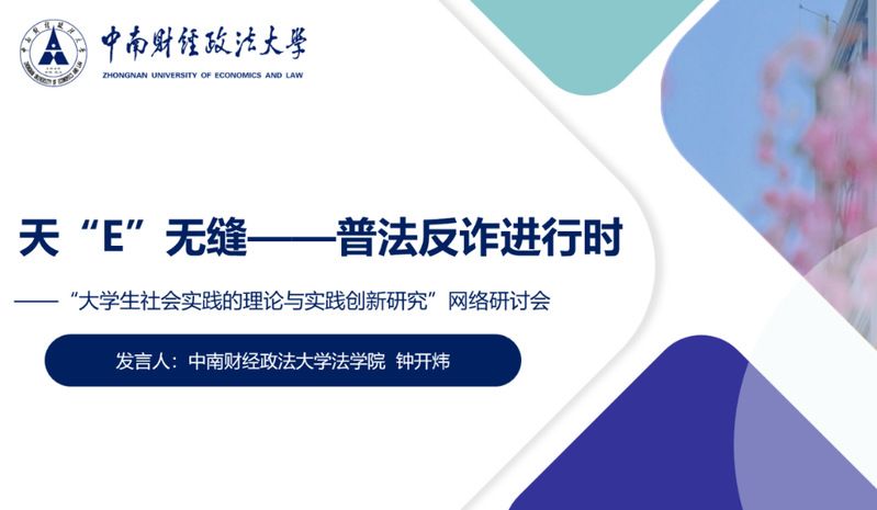 《天“E”无缝——普法反诈进行时》实践项目积极响应国家打击治理电信网络犯罪工作的指示,针对电诈猖獗的社会现象,以社区为基点,以老年人为主要受众,广泛联动社会组织,通过咨询平台、法治人生体验、新媒体矩阵等形式深入推进普法、反诈并行。曾获第六届中国青年志愿服务项目大赛银奖、湖北省青年志愿服务项目大赛金奖等荣誉;获得人民日报、长江日报、武汉江滩等媒体报道30余篇,单篇浏览量最高达28000余次,取得了良好的社会反响。