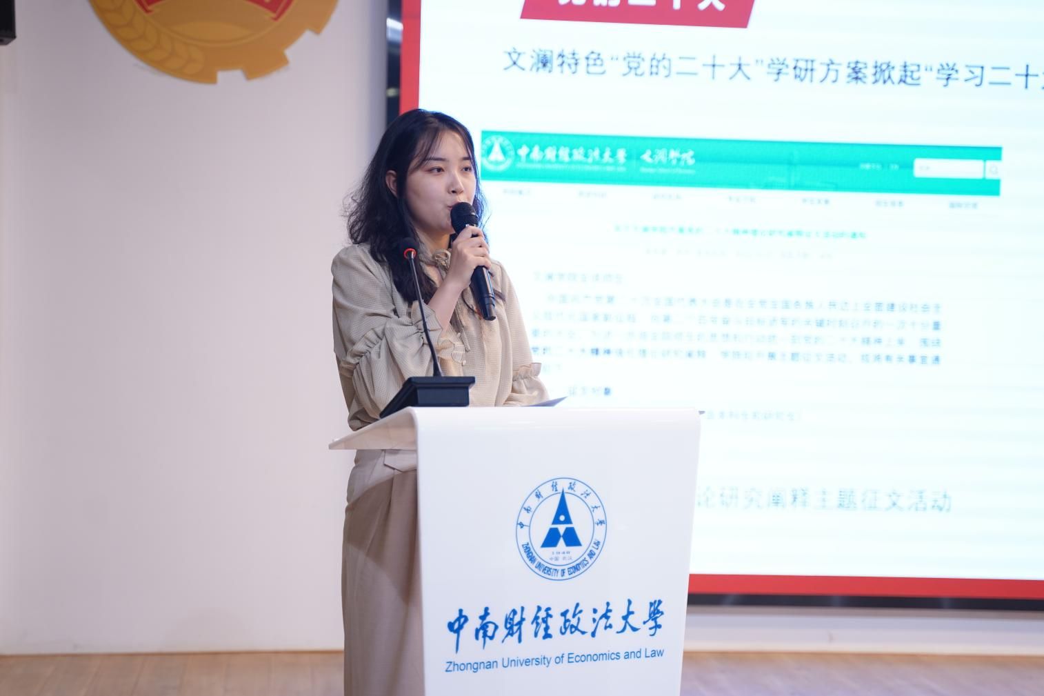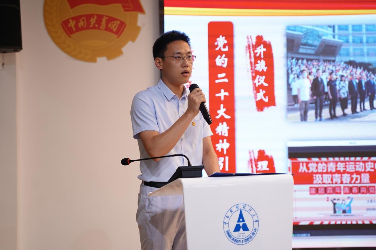 公共管理学院团委书记张黎明作题为“深耕厚植二十大 公管踔厉廿岁行”的报告