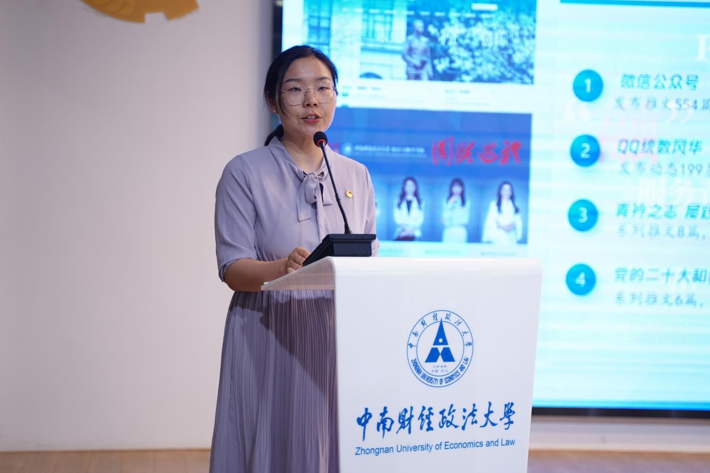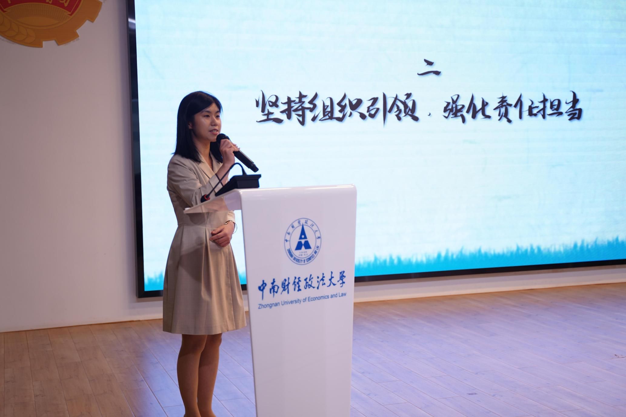 法律硕士教育中心团委书记余安琪作题为“聚焦青年 以挺膺之姿 奏青春华章”的报告