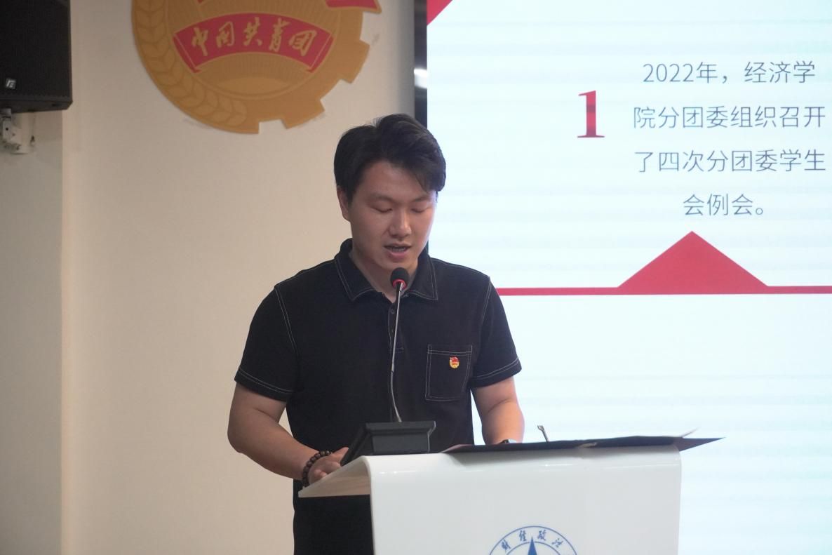 经济学院团委书记陈远瞻围绕“政治建设”、“宣传思想建设”、“基层组织建设”、“工作改革创新”、“作风建设”