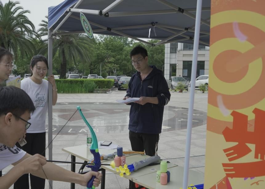 下午14:00,比赛正式开始,参赛同学热情满满,蓄势待发。活动将知识问答巧妙地与趣味游戏相融合,五个认证点“百步穿杨”、“经典演绎”、“继往开来”、“学富五车”、“勠力同心”内容丰富,形式多样,用射箭、颠羽毛球、平衡传球、摇呼啦圈等有趣的游戏考察了同学们有关党史、传统文化、科学领域等方面的知识,使同学们巩固知识又乐在其中。同学们积极思考,团结协作,在奔跑和游戏的过程中锻炼了体魄又培养了团队意识。
