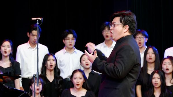 《化作千风》和《流浪的小行星》轻柔的音律,充满爱的和弦,听众在静谧中感受音乐的感动。除了《流浪的小行星》,客座指挥江扬帆老师还担任了《just a single voice》的指挥。飞扬的音符,凝聚了校声乐团内每一个孤独的声音,汇聚成音乐的热爱,成为温暖人心的力量。
