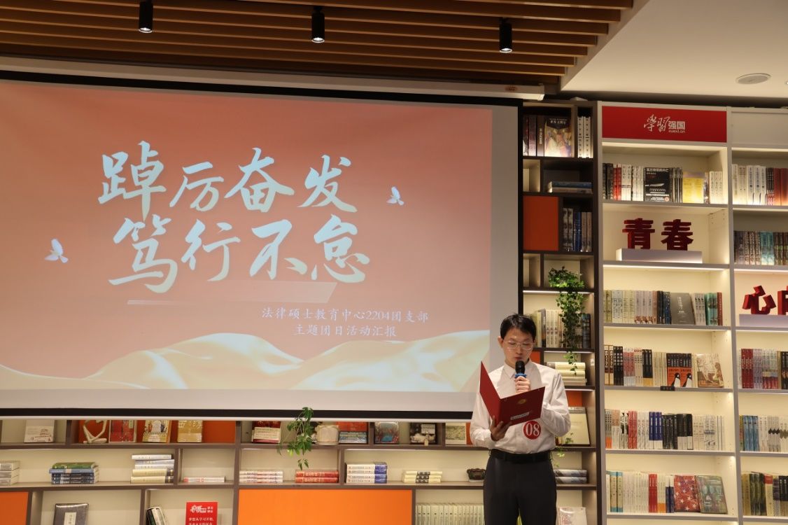 法硕2204团支部米亚铭同学围绕“扎根理论,励学实干,行稳致远丰思想”“情怀厚植,挺膺担当,法治铸魂勤践行”“征途漫漫,未来可期,青春杨帆正当时”三部分讲述团支部红色研游、普法课堂等活动。团支部成员实地感受红色校园,回顾百年党史,深刻领悟习近平总书记的重要讲话精神,不断夯实理论基础,坚定自身理想信念。