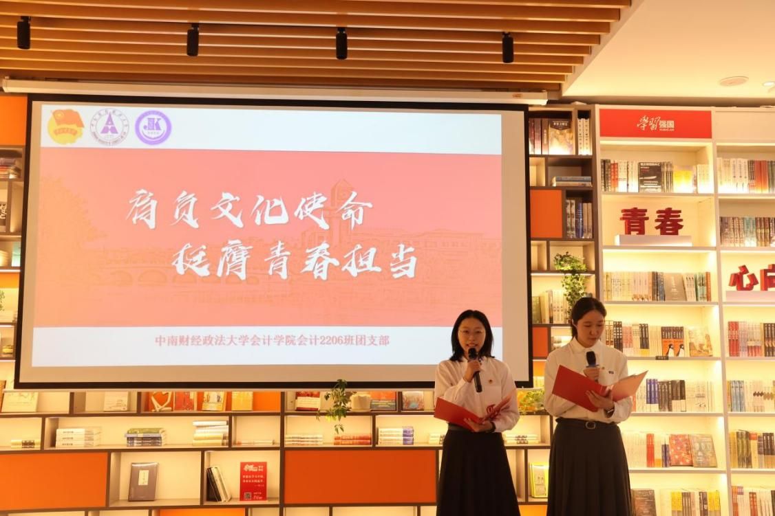 会计2206团支部夏双莲、翁舒瑶同学带来以“肩负文化使命,挺膺青春担当”为主题的风采展示,他们以民主调研决定团日活动方案,力促理论与实践结合、知识与行动融通,以线上线下双渠道丰富团日活动、室内室外多形式拓展实践课堂。