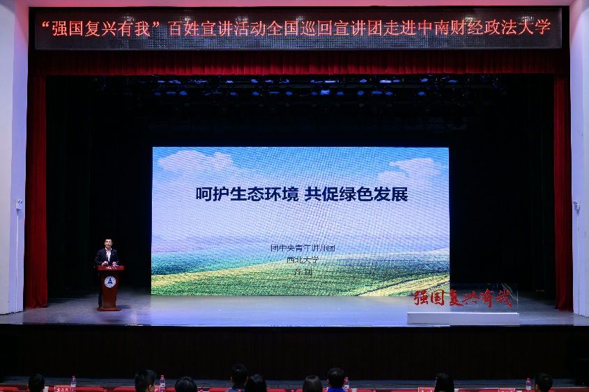 西北大学团委副书记、马克思主义学院副教授、团中央青年讲师团成员齐钊作《呵护环境 共促绿色发展》的宣讲。他从历史之道理、现实之事理和思想之哲三个维度讲述了“国之大者”的生态文明和绿色发展,他各位青年应用实际行动呵护生态环境,为促进绿色发展作出贡献,为子孙后代留下天蓝、地绿、水清的美丽家园。