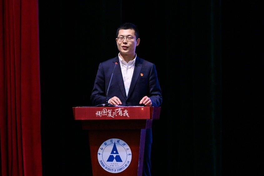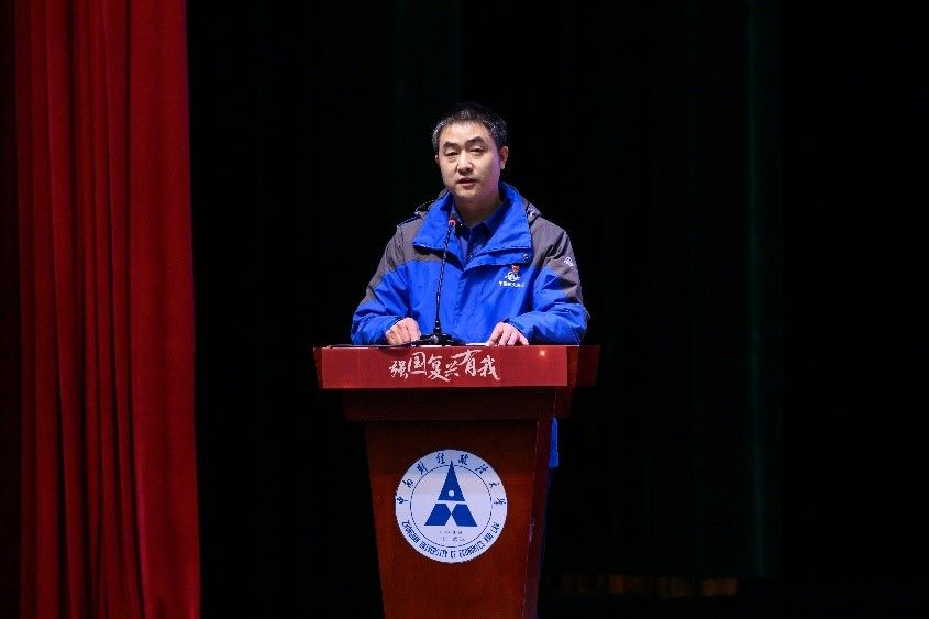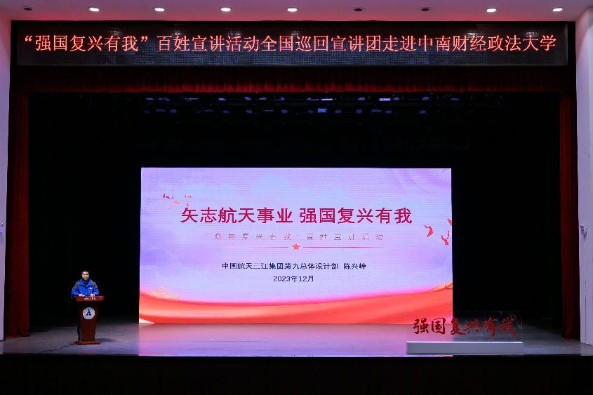 中国航天三江集团第九总体设计部航天产品设计师、全国青年岗位能手、湖北省青年五四奖章获得者陈兴峰作题为《矢志航天事业 强国复兴有我》的宣讲。陈兴峰讲述了自己的航天梦想与航天建设之路。陈兴峰说道,“选择了航天事业,就注定是默默无闻,但我们深知‘善战者无赫赫之功,赤忠者无夸夸之言’,践行‘功成不必在我,功成必定有我’的青春誓言,力争在共和国的旗帜上书写着属于自己的‘强国复兴有我’故事。”