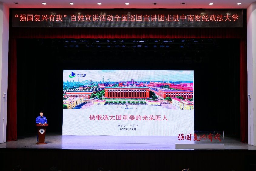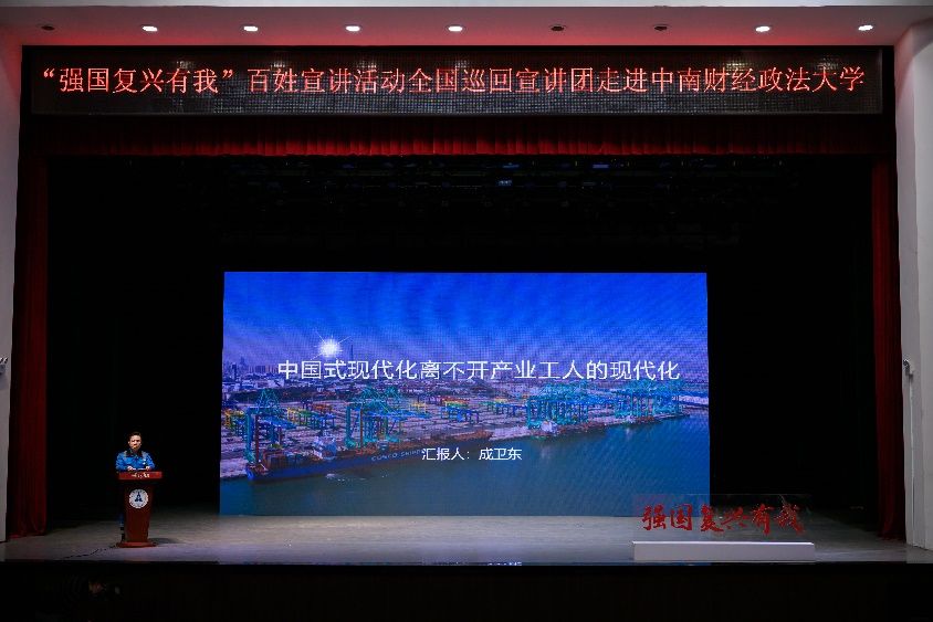 来自团中央宣讲的成员天津港第一港埠有限公司拖头队副队长成卫东,中国一重集团有限公司铸锻钢事业部水压机锻造厂首席技能大师刘伯鸣,西北大学团委副书记、马克思主义学院副教授齐钊,齐齐哈尔大学马克思主义学院教授庞晶,和来自共青团湖北省委的宣讲团成员中国航天三江集团第九总体设计部航天产品设计师陈兴峰,米兰电竞·(中国区)2023级硕士研究生苏正民等六位宣讲员立足本职岗位,围绕“学思想、强信心,奋力推进中国式现代化”进行宣讲。