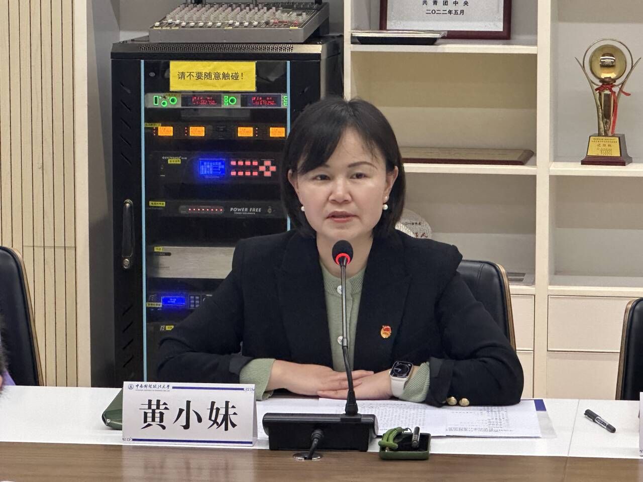 校团委书记黄小妹对会议做出总结。通过阐释我校“希贤学堂”培养青年人才力量的落实体系。本次“湘遇韶山·行走的思政课”青马班红色研学活动,是我校培养忠恕任事、人品服众的青年政治骨干的重要举措,希望我校青马学子在学习上深一步、在践行上先一步、在认识上高一筹,让韶山精神走心入实。同时她倡议,青马班学子要带着思考去实践,积极到支部、班级、社团的基层中去开展理论宣讲,传播红色精神。