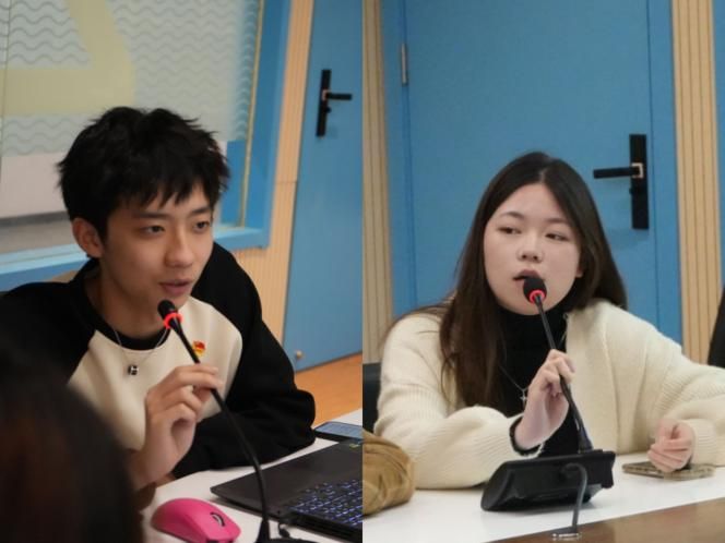 会议第五项由青年宣讲团成员领学党的二十大精神,校学生会主席团成员包嘉懿和新媒体中心骨干汪柯鋆分别进行了分享,带领校学生会成员传承精神火种,凝聚奋进力量。