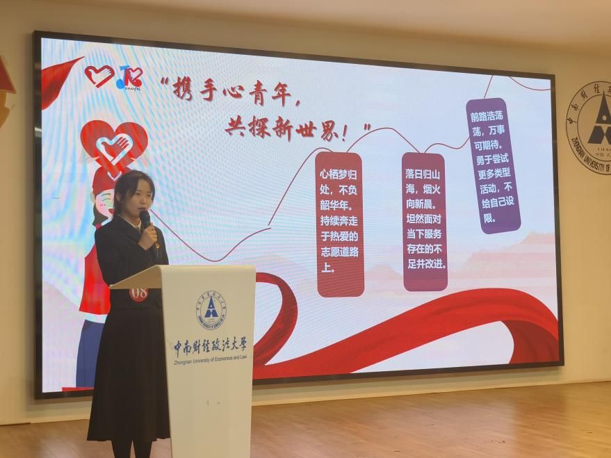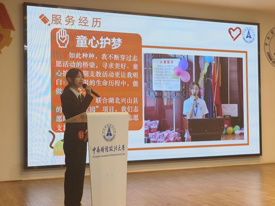 陈少琪,她参与过公益嘉年华服务项目、江夏区信访局值班活动、迎新活动等多项志愿服务活动,累计工时420余小时。她以专业知识助力志愿活动,用赤诚之心服务回馈社会,展示青年风采。