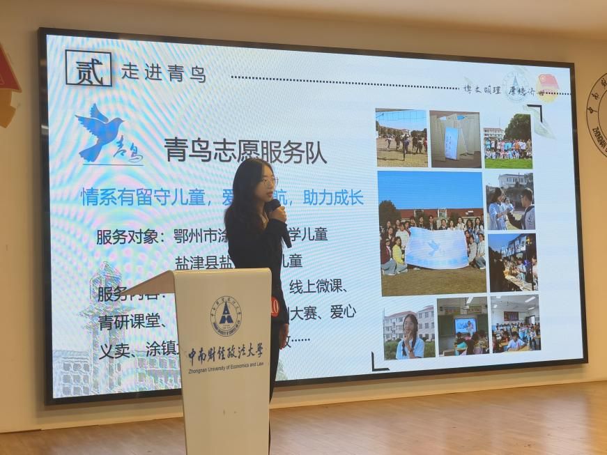 范芳铭,作为青鸟志愿服务队成员,她积极参与工商志协组织的志愿活动例如涂镇大活动、涂家垴镇暑期支教等,用志愿传递青鸟之音。
