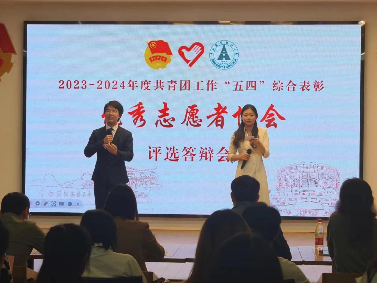 第十四位答辩的是来自会计学院志愿者协会的代表。会计学院以习近平新时代中国特色社会主义思想为指引,践行党的二十大、团的十九大以及全国两会精神,奉行“奉献,友爱,互助,进步”的志愿服务精神。开展的志愿服务包括盲童电影、蓝信封、财商教育、非遗文化……真正实现了志愿服务源于心,奉献爱心在于行。