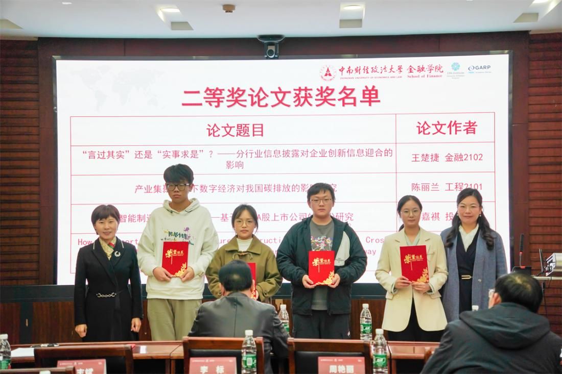 经过分论坛宣讲与专家评审委员会评议,本次论坛最终评选出一等奖论文2篇、二等奖论文4篇、三等奖论文7篇,金融学院院领导和老师为获奖同学颁奖并合影留念。