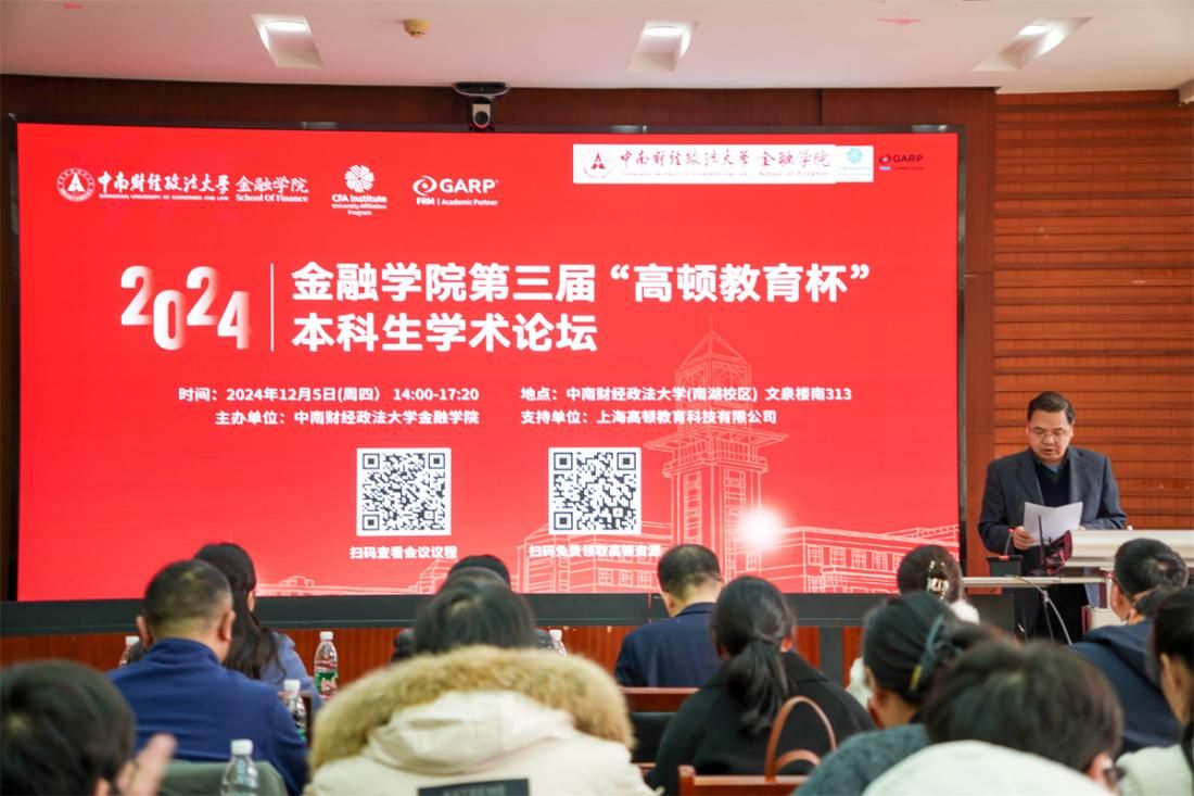新闻网讯(学生通讯员 汪天天 摄影 丁瑞)为进一步贯彻落实党的二十大关于“全面提高人才自主培养质量,着力造就拔尖创新人才”相关精神,深化财经政法特色教育及人才培养模式的融通与创新,全面提升本科教育水平,激发本科生学术研究热情,2024年12月5日下午14点,金融学院第三届“高顿财经杯”本科生学术论坛在文泉楼南313会议室隆重举行。