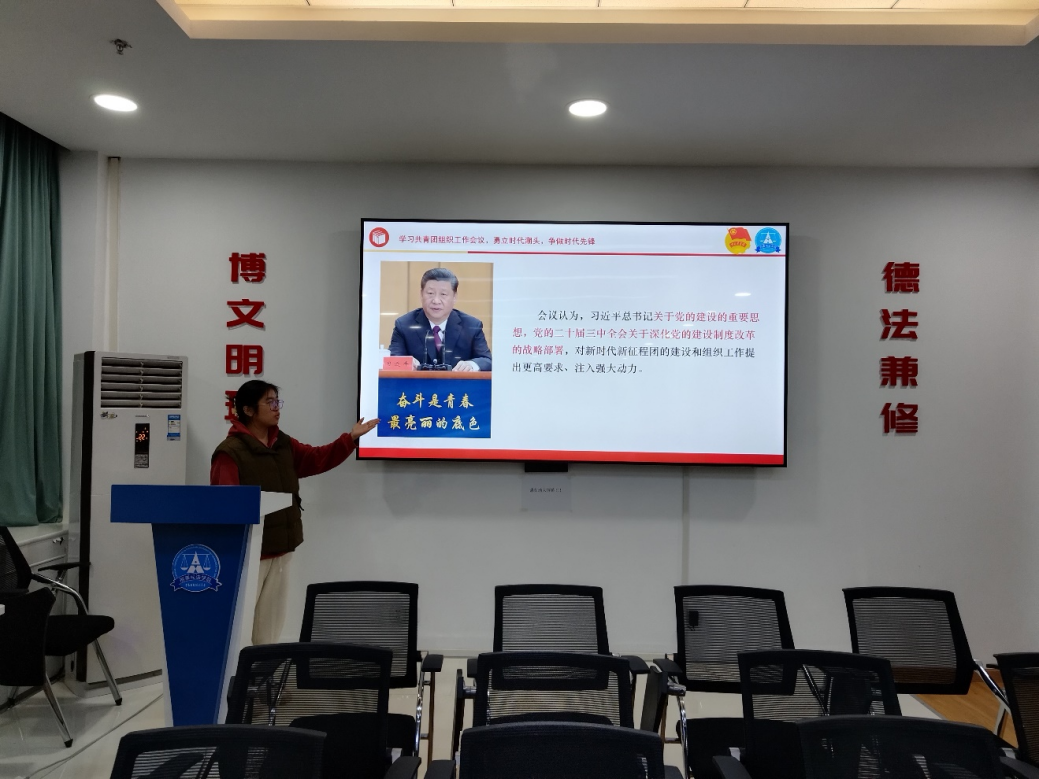 会议最后,张凡稷老师带领团学干部们一起领悟会议重点。新时代新征程上,刑事司法学院分团委要紧跟党的建设前进步伐,着眼于不断巩固和扩大党执政的青年群众基础,主动适应青年群体发展变化,积极破解团组织自身突出问题,不断推动组织工作高质量发展,为团结引领广大团员和青年为中国式现代化挺膺担当提供坚强保证。