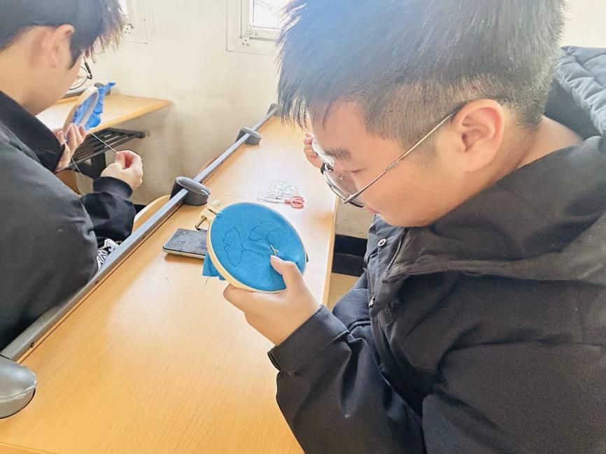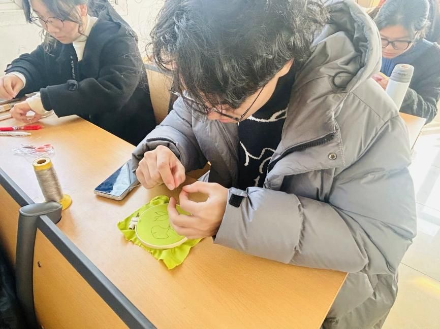 活动第二环节,彭金芝介绍了三种基本针法,并向大家分发了刺绣工具进行实践教学。同学们结合传承人的相关介绍,自己动手感受非遗魅力。针对同学们在尝试过程中遇到的问题和困难,彭金芝一一进行了耐心细致的解答和示范。许多同学都亲手完成了一幅精美的刺绣作品,活动现场营造了弘扬中华优秀传统文化的良好氛围。