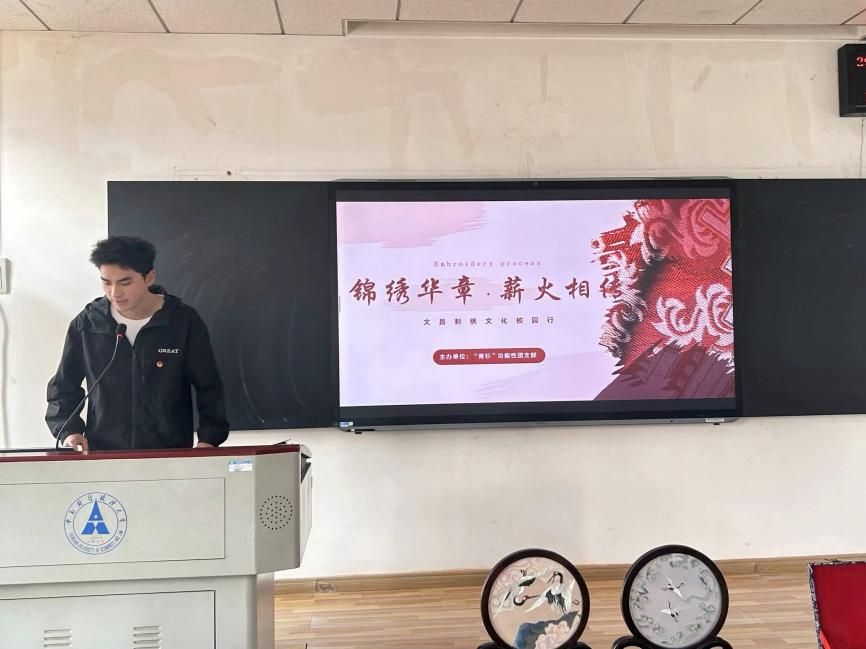 锦绣华章,薪火相传。为进一步激发广大同学对非遗文化的兴趣,以实际行动保护和传承中华优秀传统文化,2024年12月22日下午,米兰电竞·(中国区)“青杉”团支部在首义校区文润305教室开展“文昌刺绣文化校园行”活动,邀请武昌区非遗保护项目文昌刺绣代表性传承人彭金芝作为主讲嘉宾,以知识讲授和动手实践相结合的方式为同学们带来一堂别开生面、饶有趣味的非遗文化传承课。首义校区团工委兼职团干部曾诚出席活动,首义大一新生及“青杉”团支部第一届、第二届全体成员参与活动。活动由第一届“青杉”团支部副书记徐涛主持。