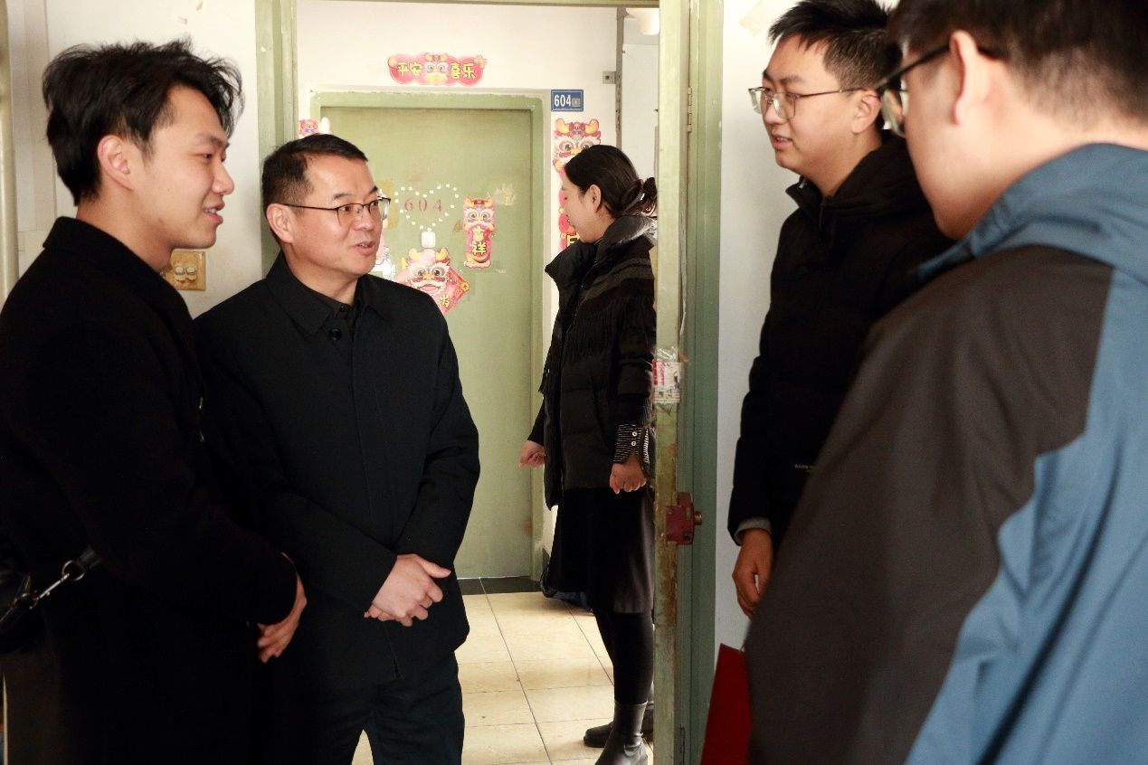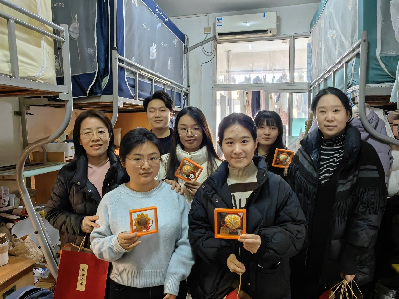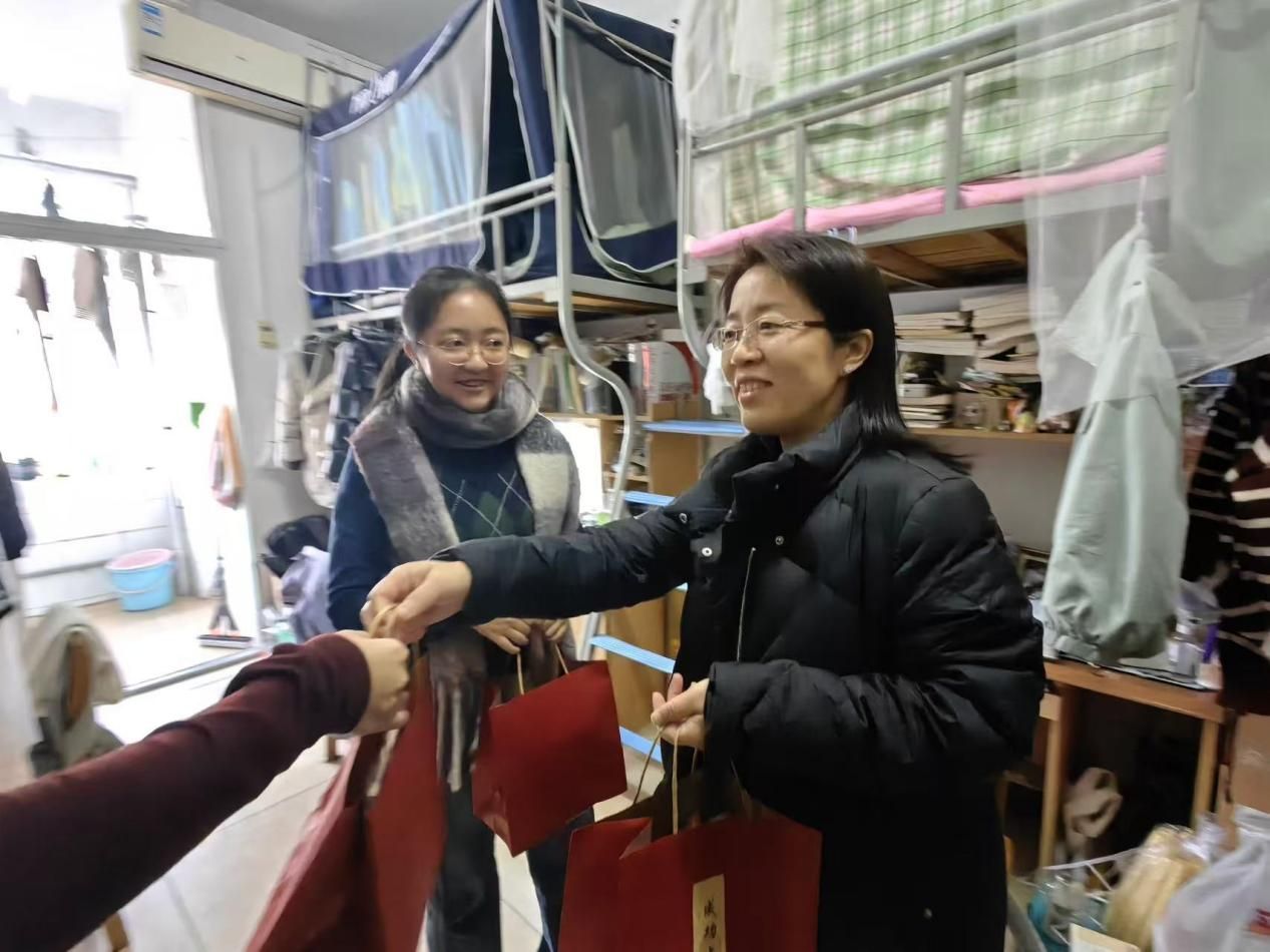 新闻网讯(学生通讯员 刘路洋)“书卷多情似故人,晨昏忧乐每相亲。”在这个呵气成霜的冬日,考研的战鼓即将敲响。为了给考研学子们加油鼓劲,经济学院精心筹备了一场暖心关怀活动,为他们送去温暖与力量,用实际行动为他们的逐梦之旅保驾护航。12月18日,经济学院院长石智雷、副院长宋丽智及学生工作办公室的老师们走访2021级学生宿舍,将学院精心准备的备考礼包送到同学们手中。