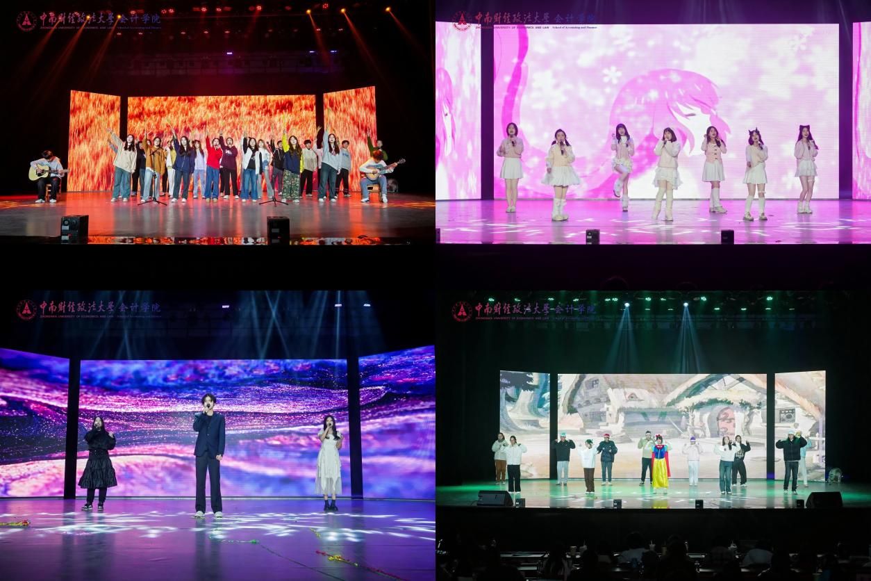 “新篇·启梦”象征着梦想的萌芽,这一篇章不仅是对过往纯真岁月的温柔致敬,更是一次面向未来的勇敢启航。会计2404班的《向新而生》带领观众找寻生命里的纯真与美好;会计2405班以童年动画歌舞串烧《不待年少》唤起大家独一无二的童年回忆;歌曲《至少还有你》深情而细腻地提醒我们珍惜身边平凡却又真挚的美好;ACCA班的《白雪公主与大高个》重新结构经典童话,为梦想注入多元与创新。