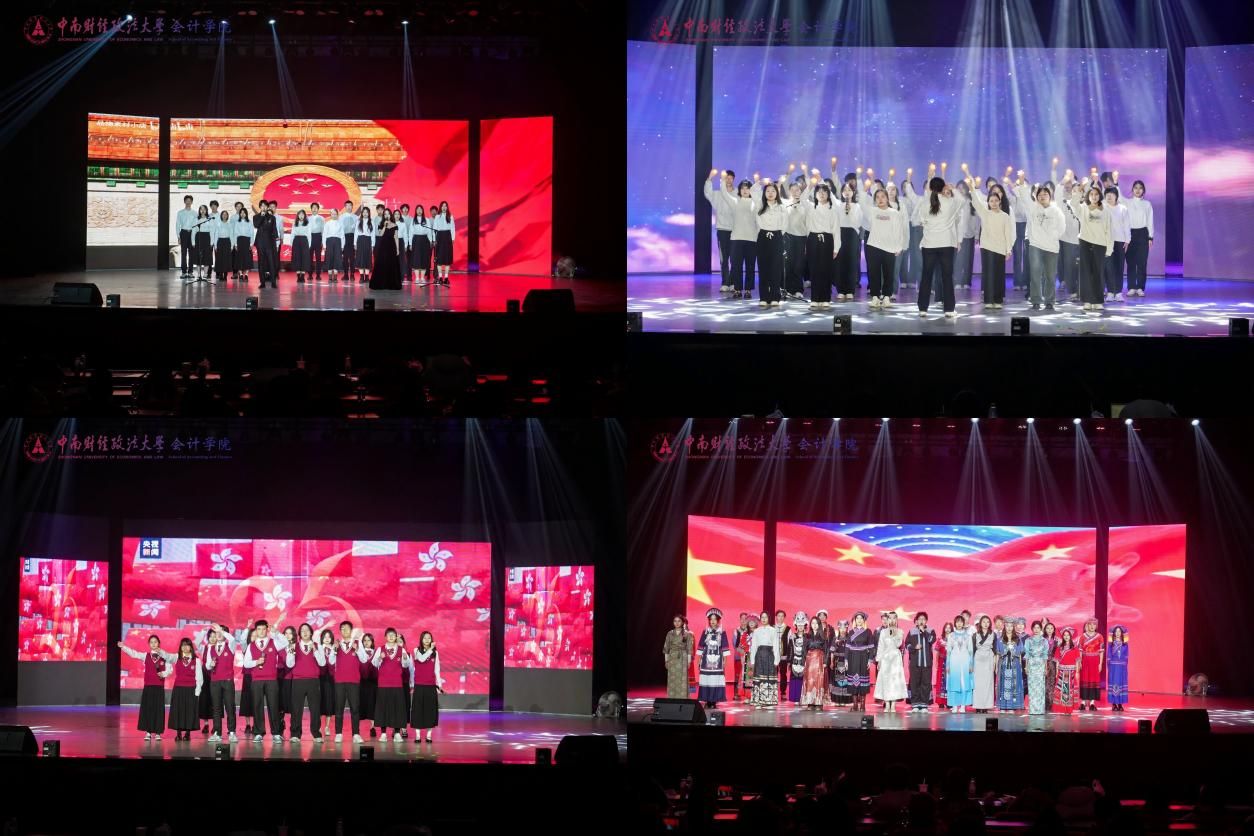 汇演的最终华章——“新颂·担当”不仅是对青年学子个人成长与梦想的颂扬,更是对国家、对民族未来的庄严承诺。会计2407班的《夜空中最亮的星》激励着青年为实现个人梦想而奋斗;财智班的《祖国不会忘记》缅怀仁人志士,表达了每一位中华儿女对祖国深沉而真挚的热爱;恰逢澳门回归祖国25周年,港澳台同学们倾情演绎的《海峡潮音·港澳台歌韵秀》展现了港澳台与祖国大陆之间不可分割的血脉联系和文化共鸣;少数民族学生代表表演的《爱我中华》将汇演推向了高潮,彰显了各个民族血脉相连、携手并肩的团结力量。新时代的青年,肩负着推动国家发展、促进民族团结、传承优秀文化的时代重任,他们积极融入民族复兴的伟大征程,铭记个人理想与国家命运紧密相连,以实际行动诠释着“新颂·担当”的深刻内涵。