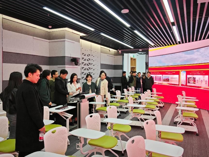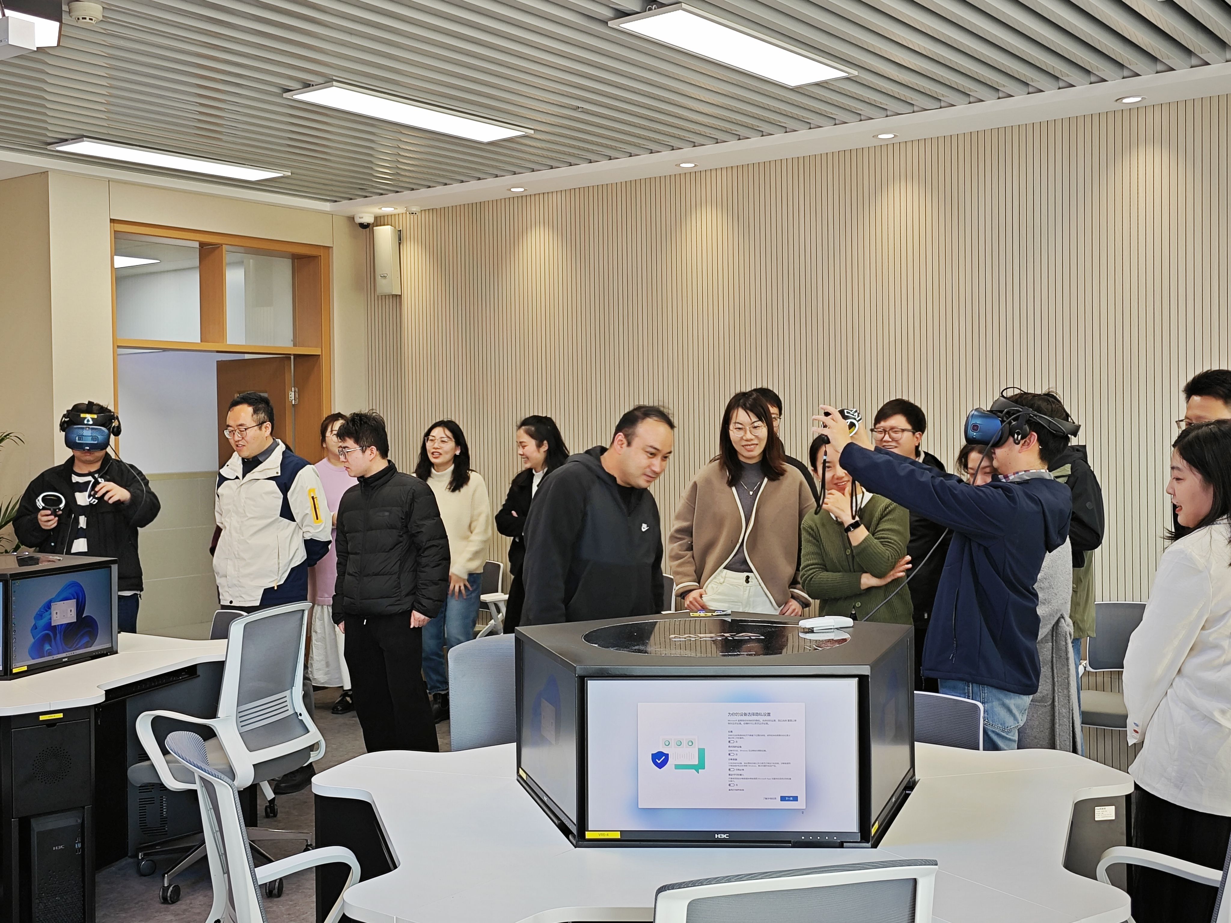 会议开始前,为深入了解教育数字化前沿趋势,创新高校共青团实践育人模式,团干们集体参观了文瀚楼新建成的新文科综合实验室,近距离感受数字化教学魅力,探索创新教学模式。