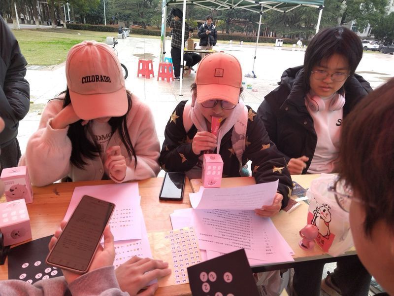 同时,一些权益小游戏也让同学们流连其间。在“火眼金睛”游戏中,参与者需要根据emoji图案猜与权益相关的成语,自行答对获2积分,根据提示答对获1积分,部分成语难度较大,但是同学们仔细分析emoji表情表示的意思,最终也能够自行猜出来。
