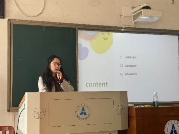 班长李鑫宇以“团结、温暖、协作”为关键词,梳理了上学期班级建设成果。在班级凝聚力建设方面,通过破冰团建、节日关怀等活动,班级成员从“分散的个体”逐渐凝聚为“温暖的大家庭”。谈及班委协作时,她展示了一些班委分工的聊天图片,生动还原了一次精彩活动背后班委团队是如何各司其职又紧密配合。在班级制度方面,她指出,周末查寝、每日课堂考勤等为同学在校安全筑牢了坚实防线,为良好的教学秩序奠定了坚实基础,同时班级已形成了涵盖考勤、活动参与、评优评先的完整制度体系。