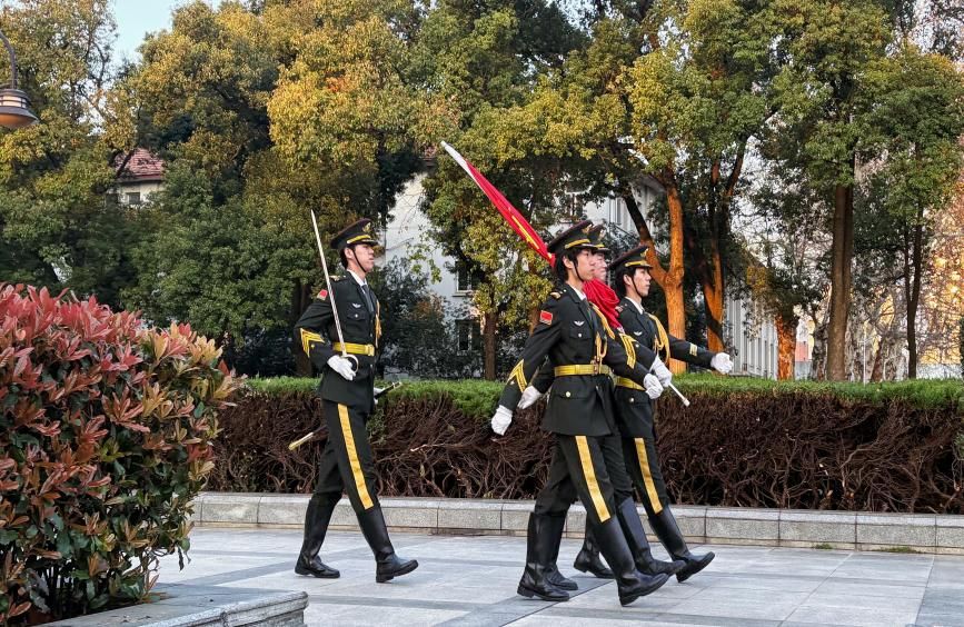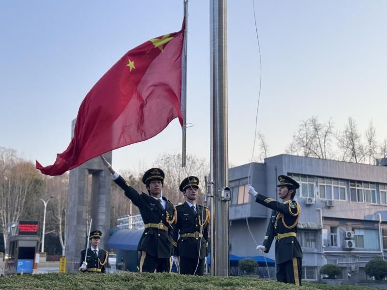 7时整,在晨光与薄雾交织中,国旗护卫队迈着铿锵正步入场。伴随庄严的《义勇军进行曲》,全体师生肃立行注目礼,目送五星红旗冉冉升起,全体师生将爱国情怀融入新学期的奋进征程。
