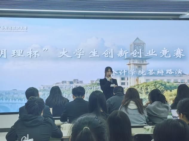 新闻网讯(通讯员 徐梓菡 王赫 吴文婷 摄影 徐梓菡 苏彤 王赫)为深入贯彻落实“以赛促学、以赛促创”的教育理念,激发学生创新创业热情,提升实践能力,3月13日14:30,会计学院于文瀚楼北406举办第十一届“明理杯”大学生创新创业大赛院级选拔赛。本次活动旨在挖掘培育优秀项目,搭建互动交流平台,促进创新创业教育与实践的深度融合。会计学院专任教师陈峻、陈舒宁、郑瑶担任此次竞赛评委,活动由黄品雯主持。