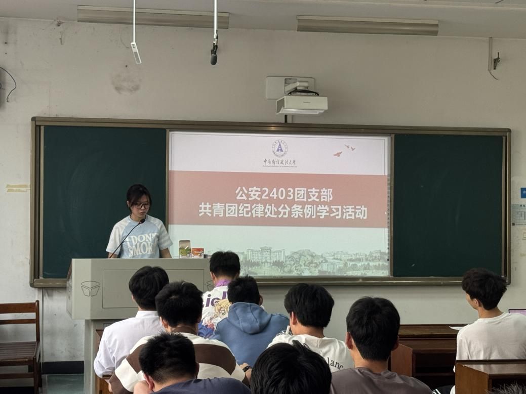 新闻网讯(学生通讯员 蒋承洋)为进一步加强团组织建设,提升团员纪律意识与责任担当,3月26日,公安2403团支部在文波206开展了《中国共产主义青年团纪律处分条例(试行)》(以下简称《条例》)专题学习会。此次活动通过理论学习与实践结合的方式,引导团员深刻理解团纪内涵,筑牢思想防线。