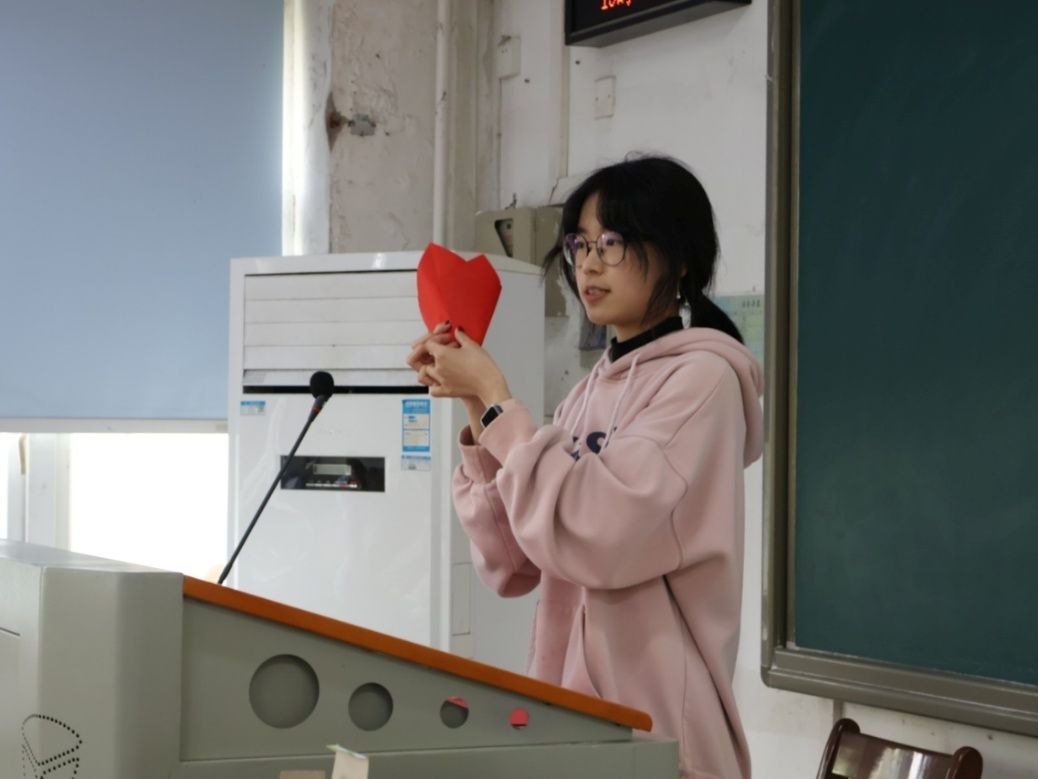 活动伊始,贺莹同学为大家讲解剪纸文化的传承历史和劳动教育的重要意义。接着,她带领同学们学习视频教程,了解到完成剪纸需要折、画、剪三个步骤,经过详细的讲解,同学们基本明白了剪纸的基本要领。
