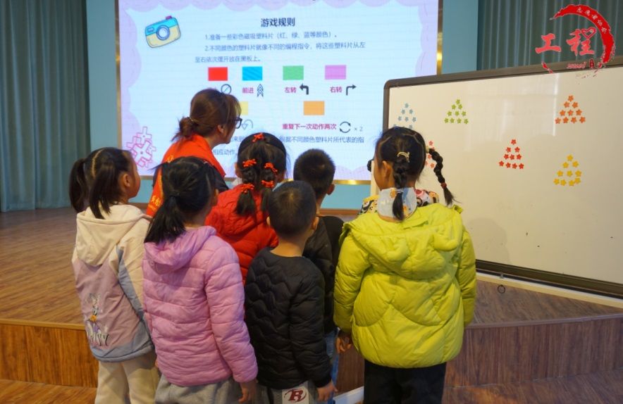 活动还安排了实践互动小游戏环节,小朋友们通过操作指令塑料片、排列指令卡片完成一系列挑战,现场气氛被推向高潮。他们在游戏中收获快乐的同时,也学习到了新知识。“动手+思考”的活动形式使编程启蒙突破了传统课堂的局限,也启发了孩子们编程思维,让孩子们感受到编程的魅力与奥妙。