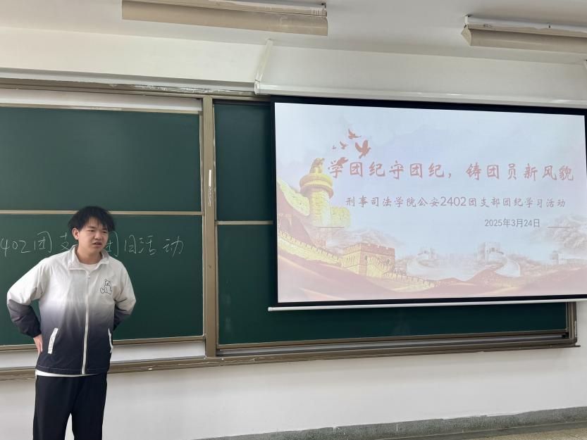 新闻网讯(学生通讯员 冉庭恺)为深入贯彻落实全面从严治团要求,进一步强化团员纪律意识,公安2402团支部于3月24日在文泰楼304教室开展《中国共产主义青年团纪律处分条例(试行)》专题学习会,旨在强化青年团员的规矩意识和责任担当,引导青年团员坚定理想信念、锤炼坚韧品格。