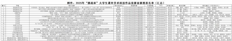 根据《关于组织第十一届“明理杯”大学生创新创业竞赛暨第十九届“挑战杯”大学生课外学术科技作品竞赛的通知》《关于组织开展“创新湖北·青力青为”湖北省“挑战杯”大学生课外学术科技作品竞赛的预通知》相关要求,经自主申报、学院初赛、线上评审、决赛展示答辩等环节,共推荐19个项目(含港澳台赛道2个)参加省赛(附件)。